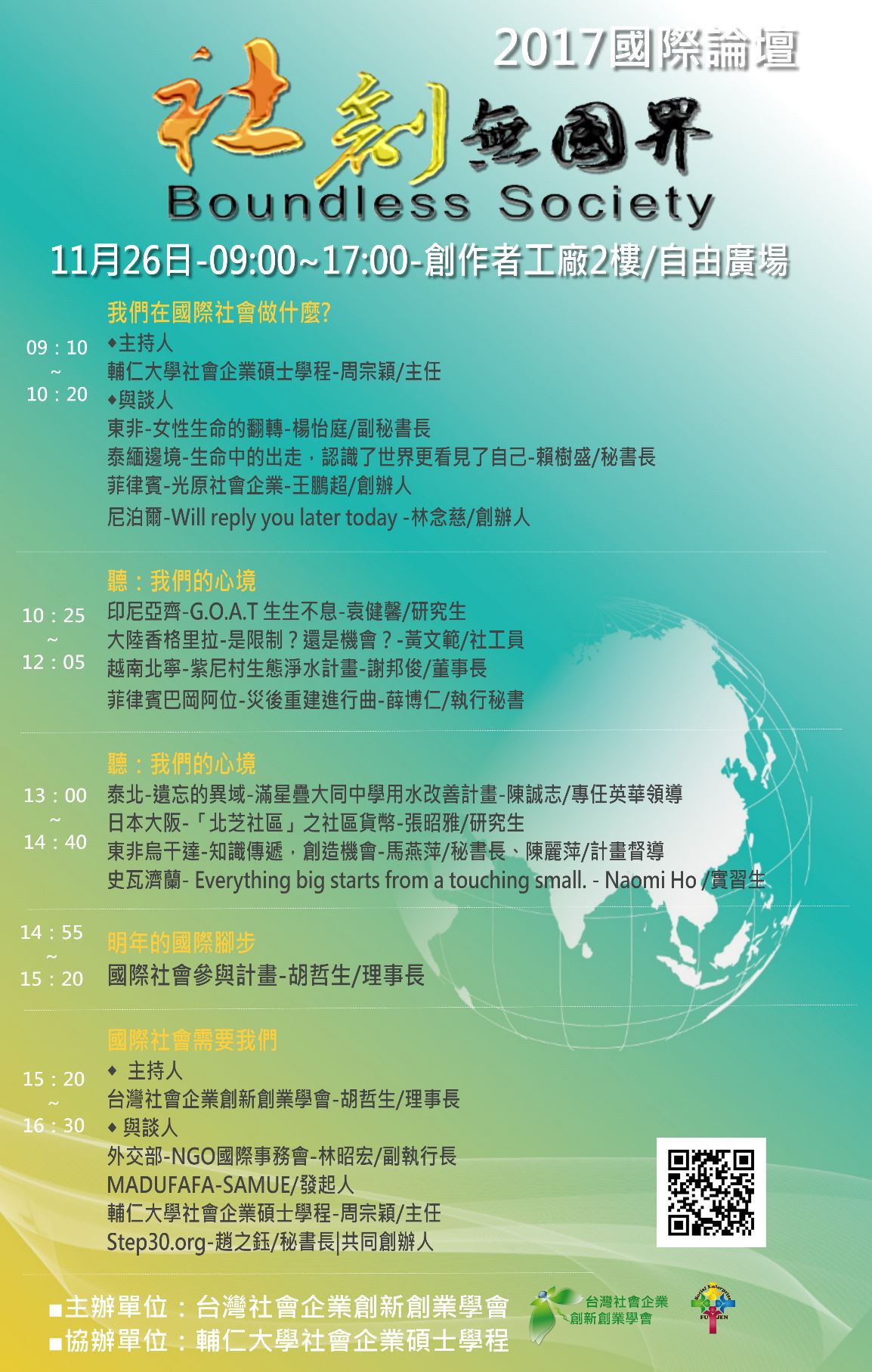 國際論壇:11/26(日)早上9點至下午5點。