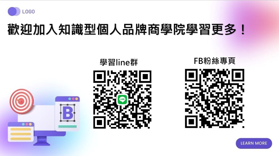 知識型個人品牌商學院學習line群:https://line.me/ti/g/P8pfW8mamh