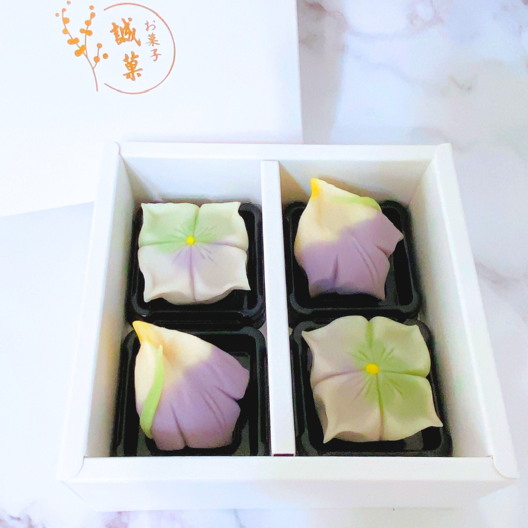 - 可帶回四個練切和菓子,附紙盒提袋包裝。