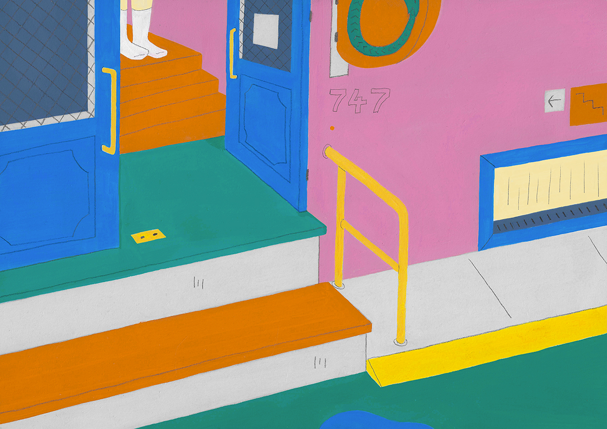她對空間表現特別有感,並執著於作品中的詩意隱喻及文學性,使看似日常生活的情景滿是寂寥與疏離感,作品用色熱鬧、畫面卻安靜。