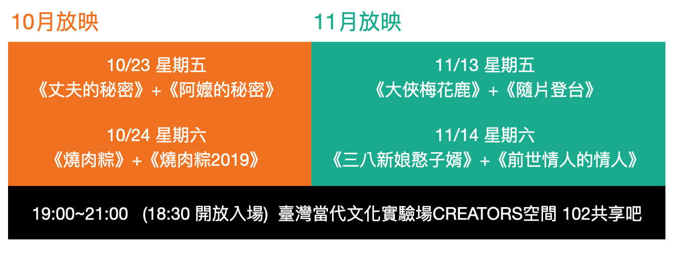 丈夫的秘密 The Husband's Secret 林摶秋│1960出品│2017數位修復│100min│臺語│黑白 | 阿嬤的秘密 Grandma’s Small Talk 林世菁│2019出品│25 min│國臺語│彩色+黑白 |
