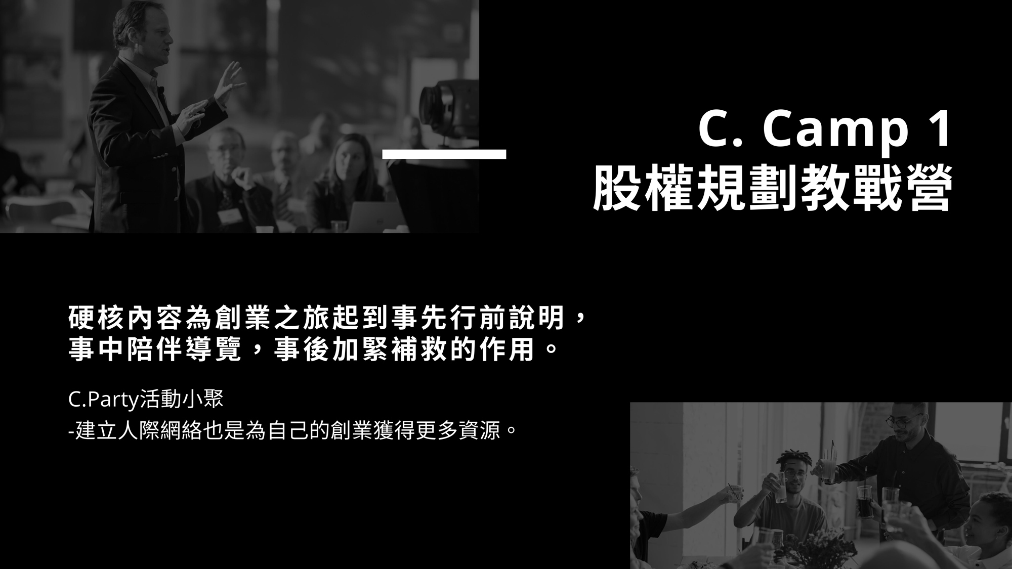硬核內容「CnC Camp 1股權規劃教戰營」+ 軟性互動「C.Party活動小聚」