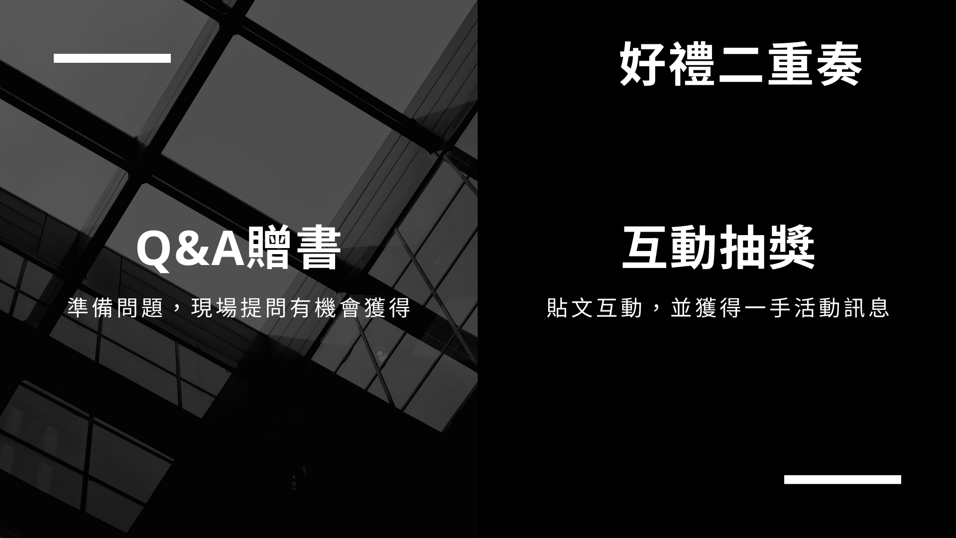 1.現在報名準備好問題,到現場提問就有機會獲得《創業股權規劃實戰聖經:給台灣新創、投資者的募資、估值、財務問題解決指南》與作者親筆簽名。數量有限,要搶要快。