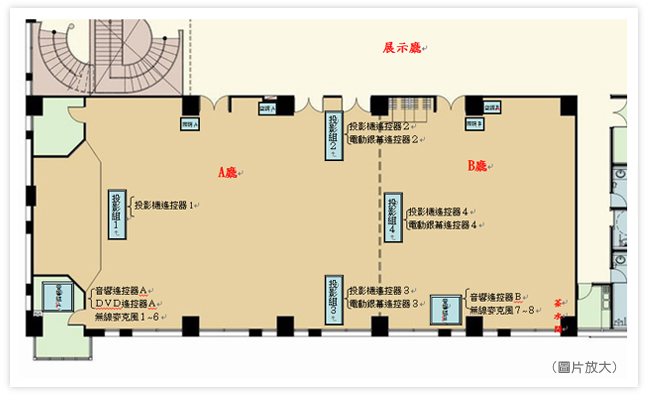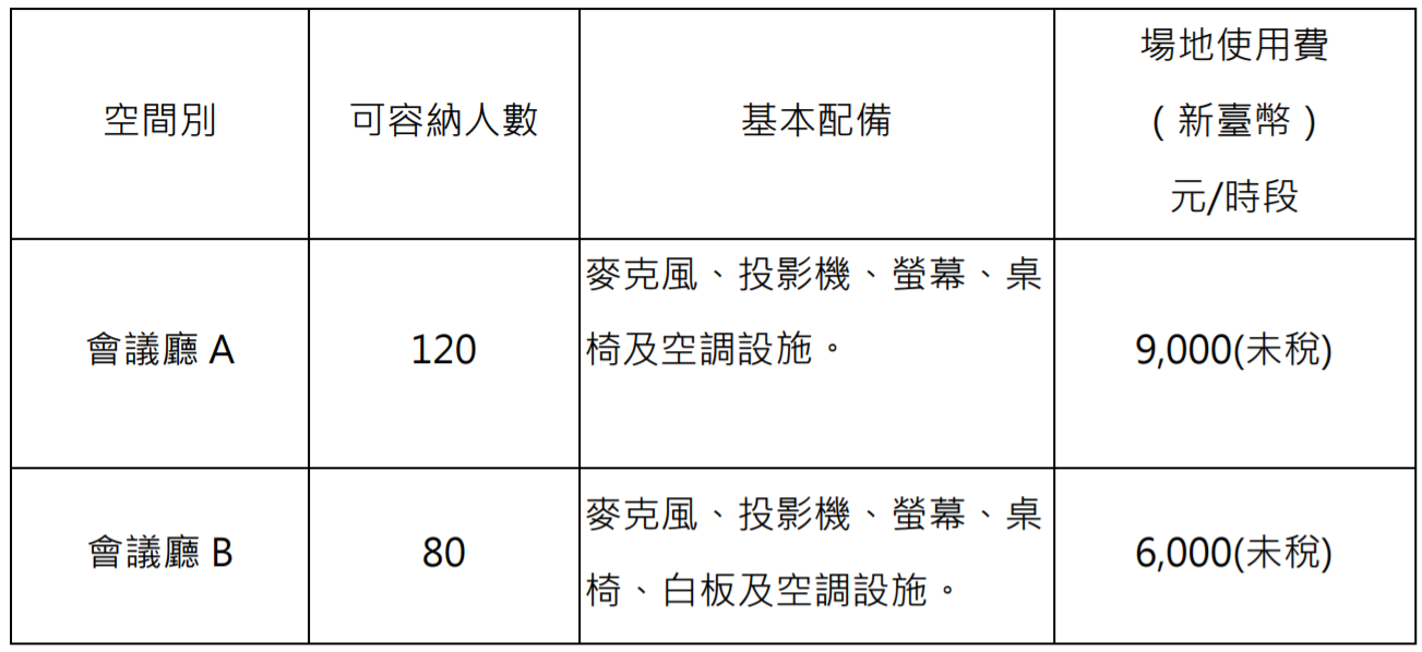 ※會議廳A+B隔間可打通,可容納人數200人,場地使用費15000元(未稅)/時段