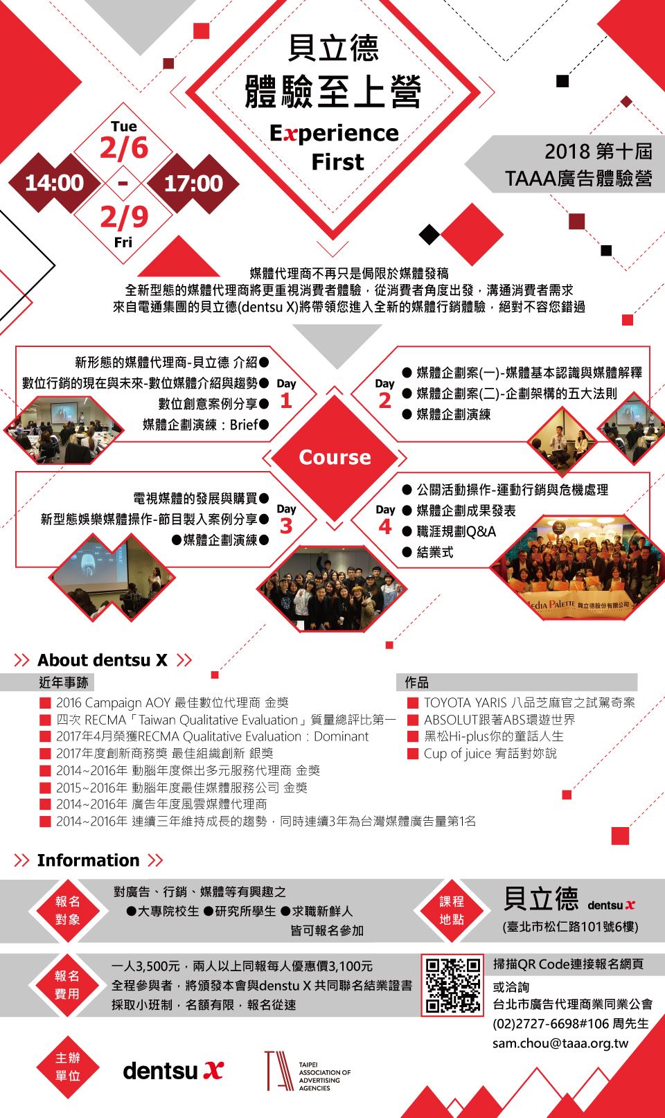 3.凡全程參與,將頒發貝立德(dentsu X Taiwan)與台北市廣告公會聯名結業證書。