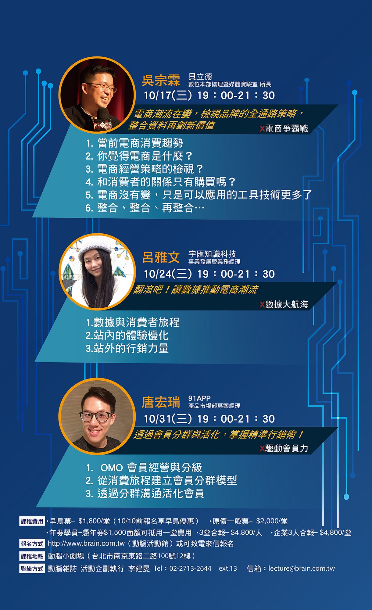 Tel:02-2713-2644 ext.13 信箱:lecture@brain.com.tw