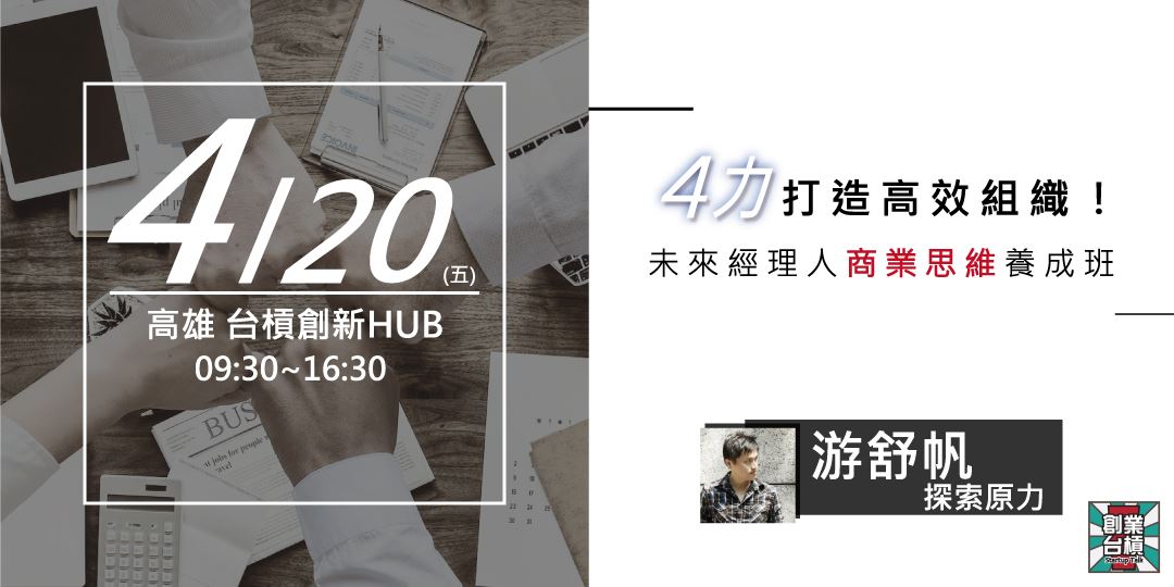 4/20(五)【台槓私塾】4力打造高效組織!未來經理人商業思維養成班