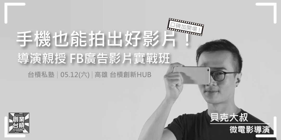 5/12(六)【台槓私塾】手機也能拍出好影片!導演親授,FB廣告影片實戰班(口碑加開)