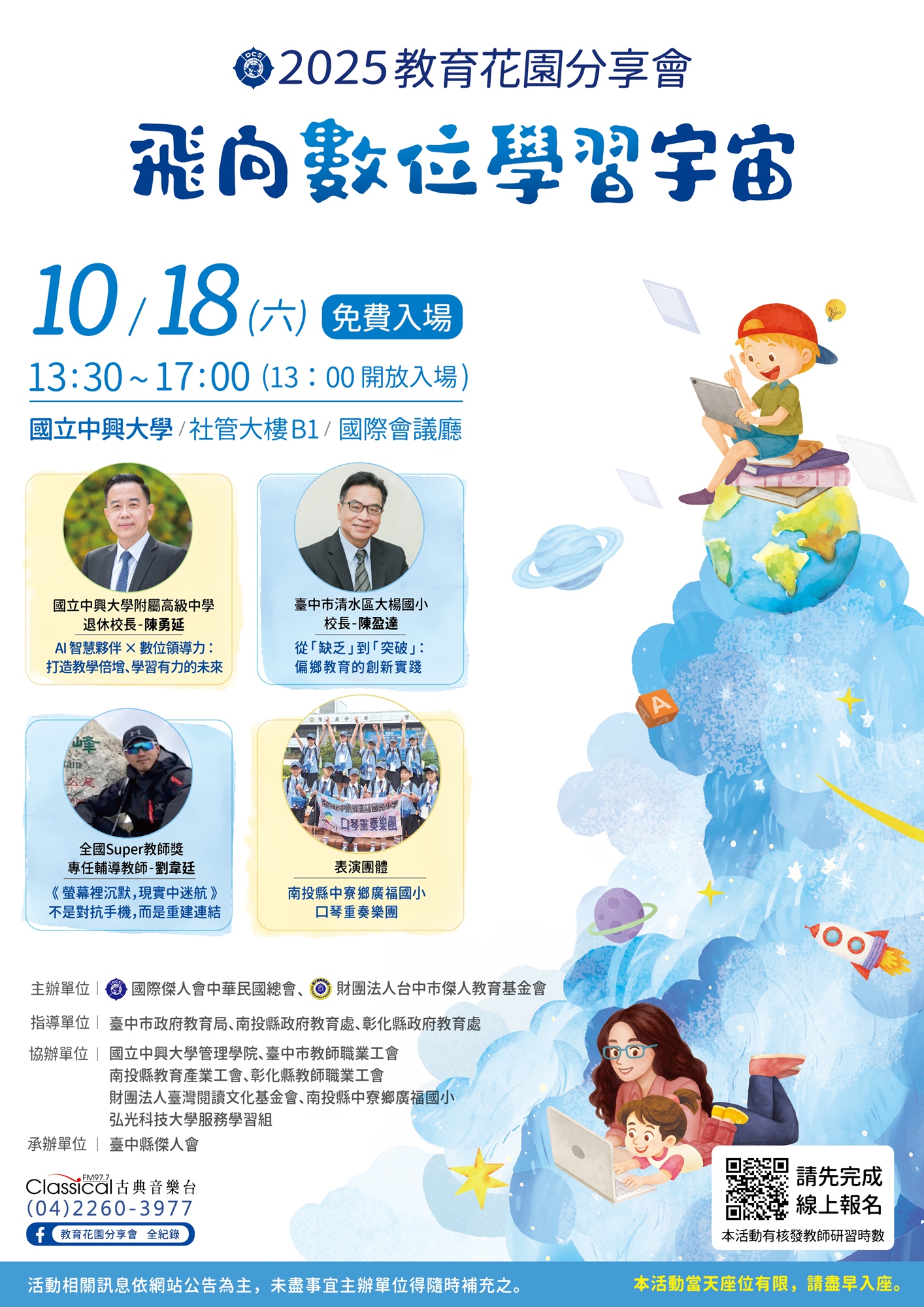 2025教育花園分享會主題《飛向數位學習宇宙》,邀請您一起探索數位教育的新視野: