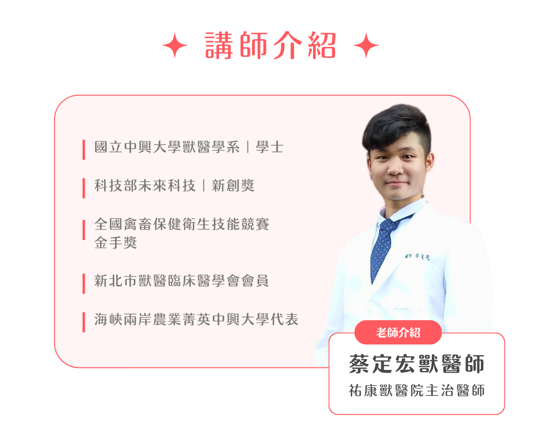 此次活動課程由行業內的專家蔡定宏獸醫師主講,探討高齡毛孩的注意事項,並分享照顧高齡寵物實用方法。透過深入的專業知識,您將能夠更好地照顧毛孩的健康需求!