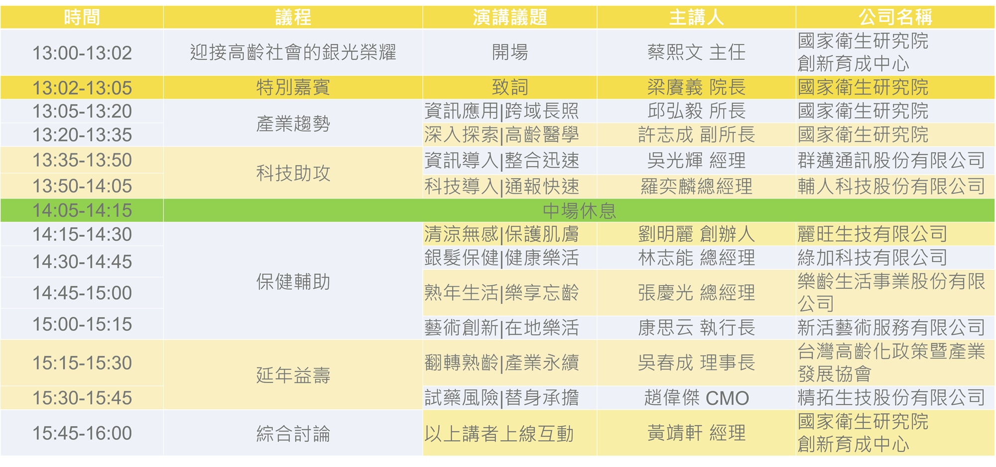 本次論壇緊扣"銀浪來襲 ‧ 御風而行"的概念,闡述產業如何應用科技、外在輔助、醫療幫助,來達到健康老化、樂活人生以及建構安全的生活環境。