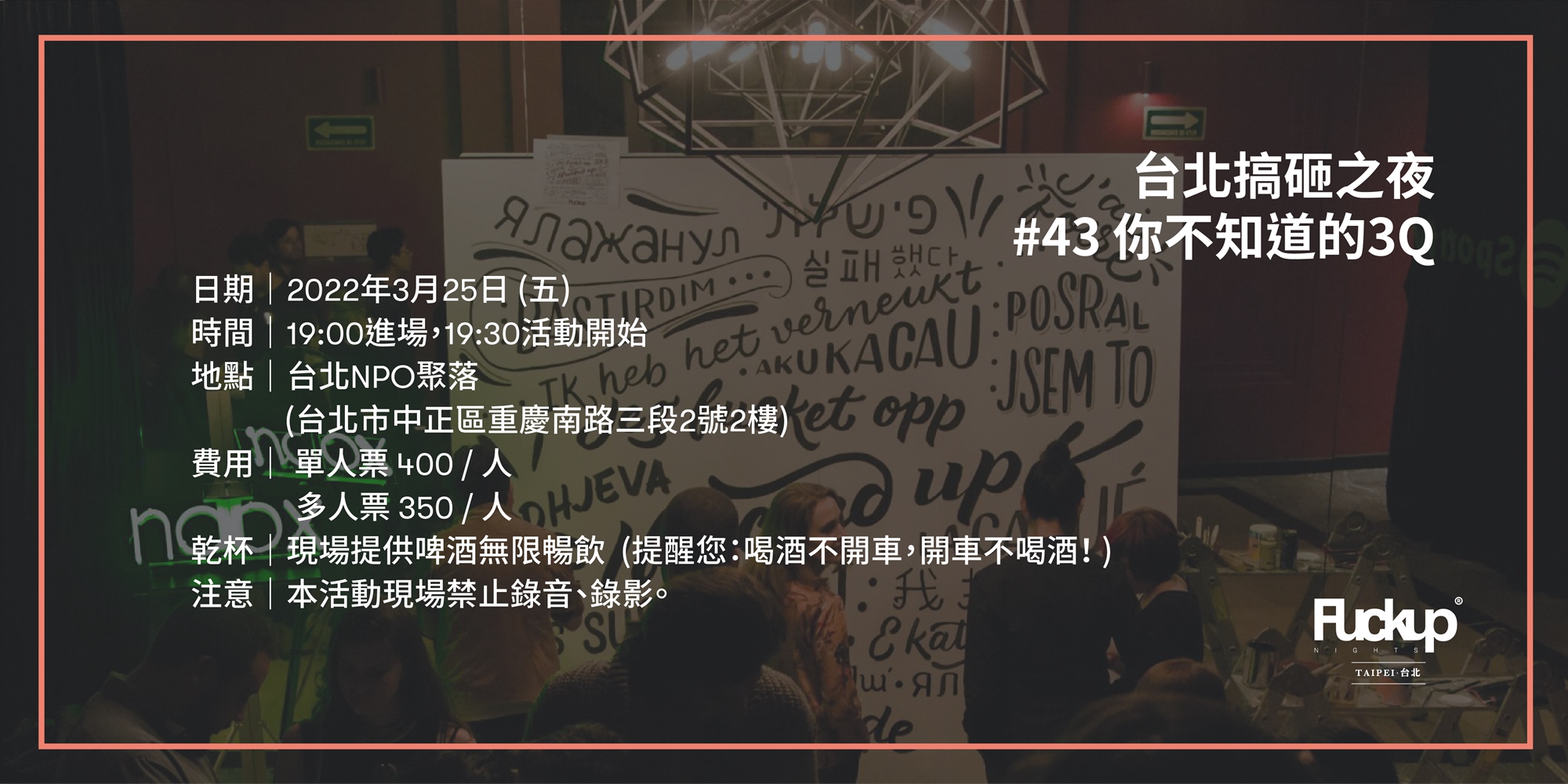 時間|2022/3/25 (五) 19:00進場,19:30活動開始