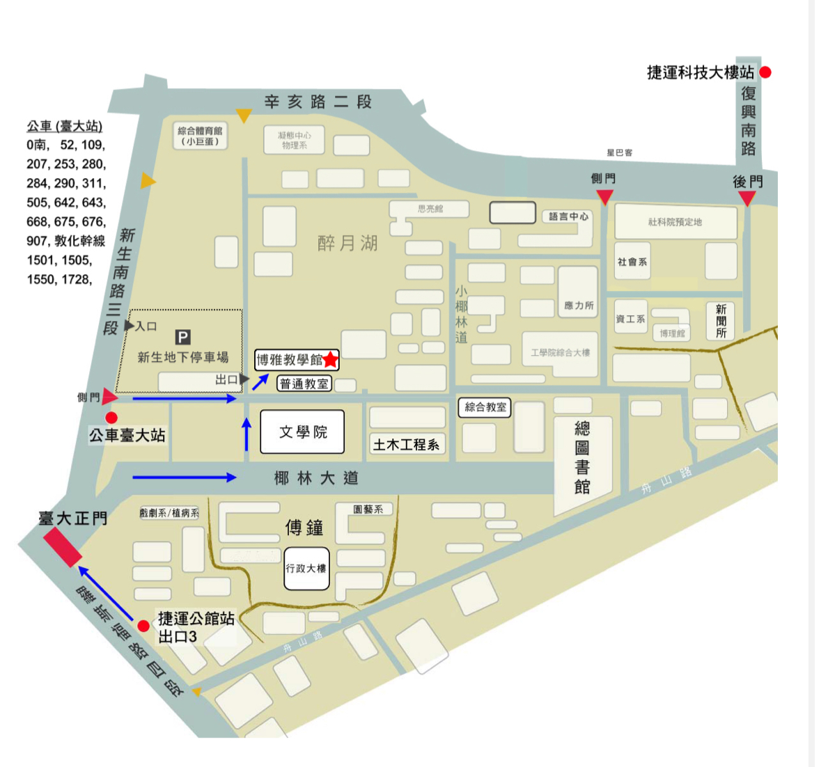 3種方式抵達台大博雅教學館: