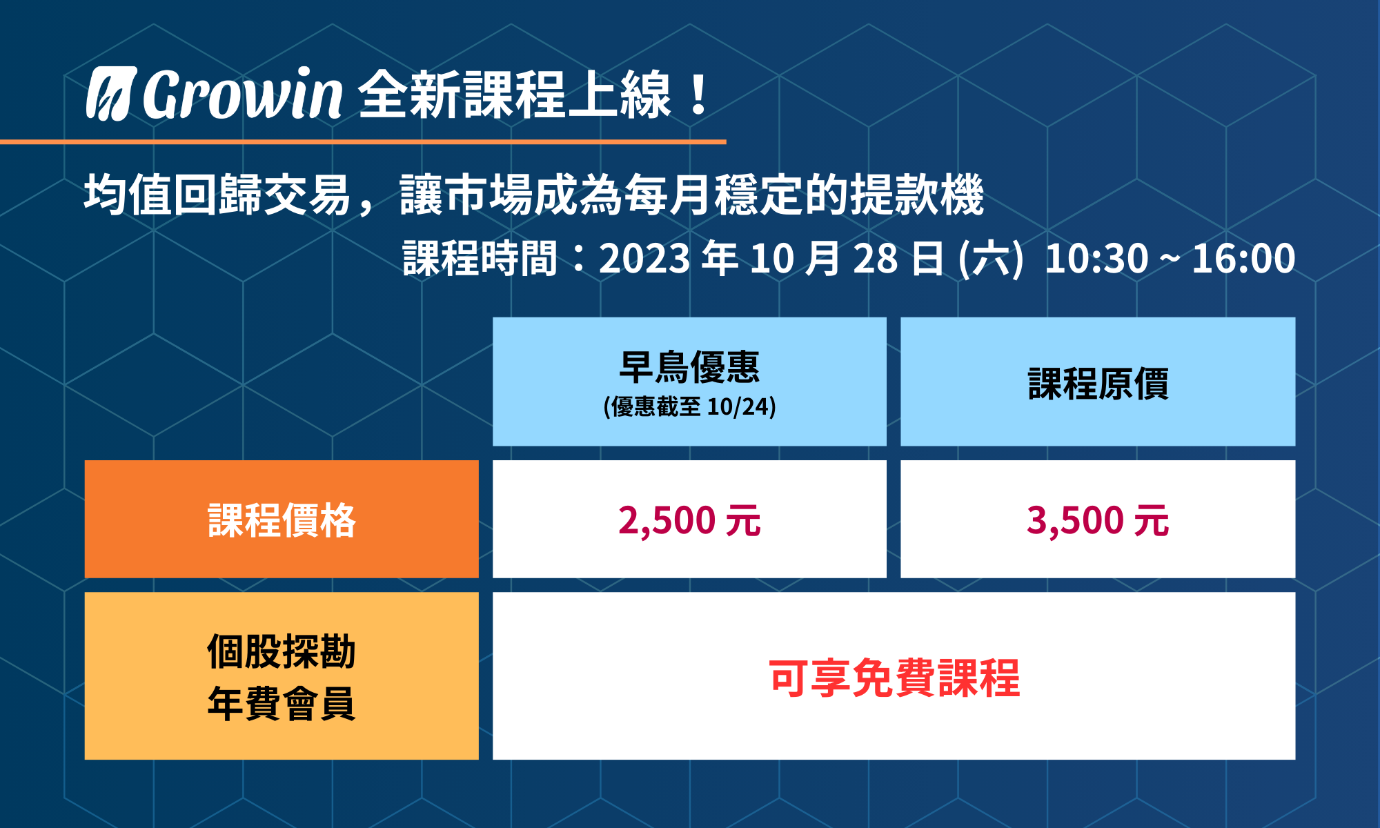 👉 好康報你知:只要成為 Growin 個股探勘年費會員,即可免費參加課程 !除此之外還可以獲得另外兩堂:動能交易、選擇權課程的課程錄影 !