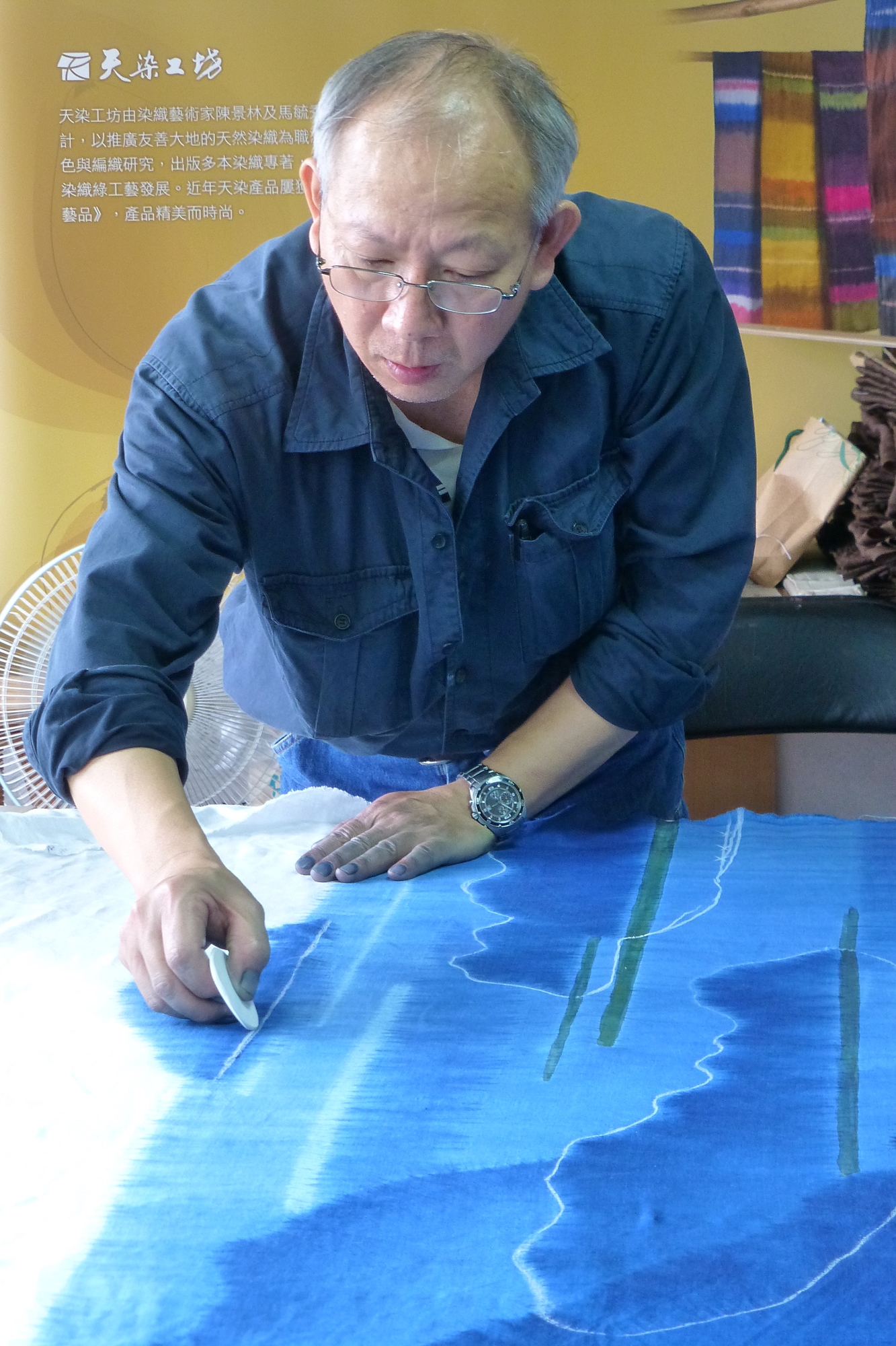 陳景林老師是輔導「新埔柿染坊」柿染至植物染技藝的老師,當年每周從南投到新埔教學,為學員建立起完整的植物染知識與技能。
