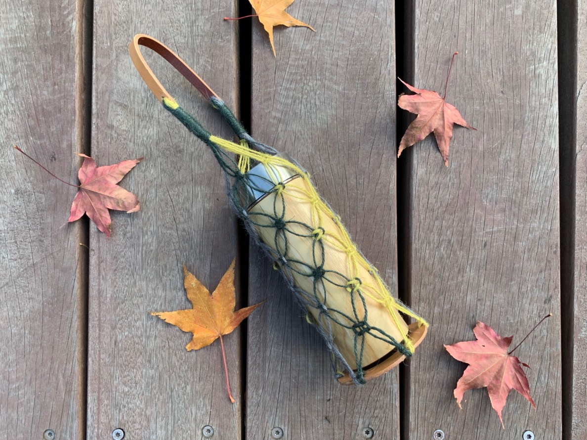 把美麗老窗花紋編成麻繩網袋,配上皮革手把與底座,一起體驗麻繩的美好。套在喜愛的水瓶上,把窗花與皮革的美麗帶著走吧!
