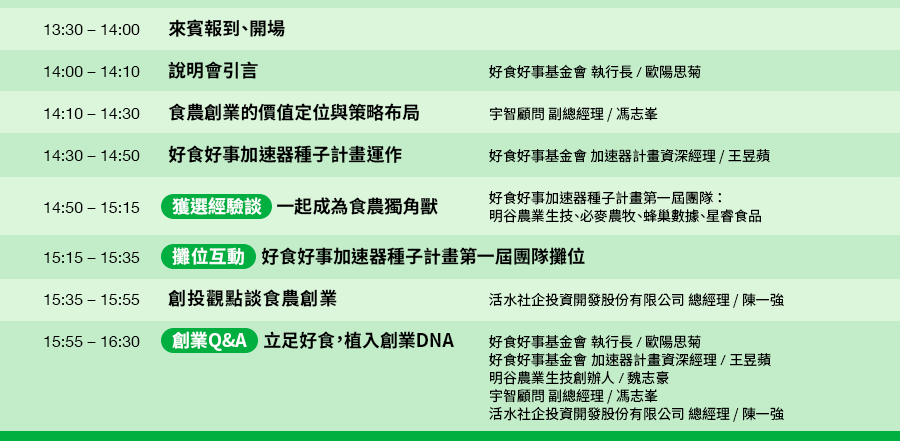 邀請全台農業、食品科技新創團隊一同到場聆聽