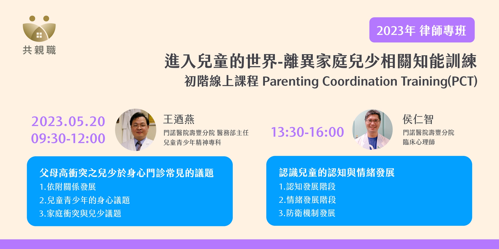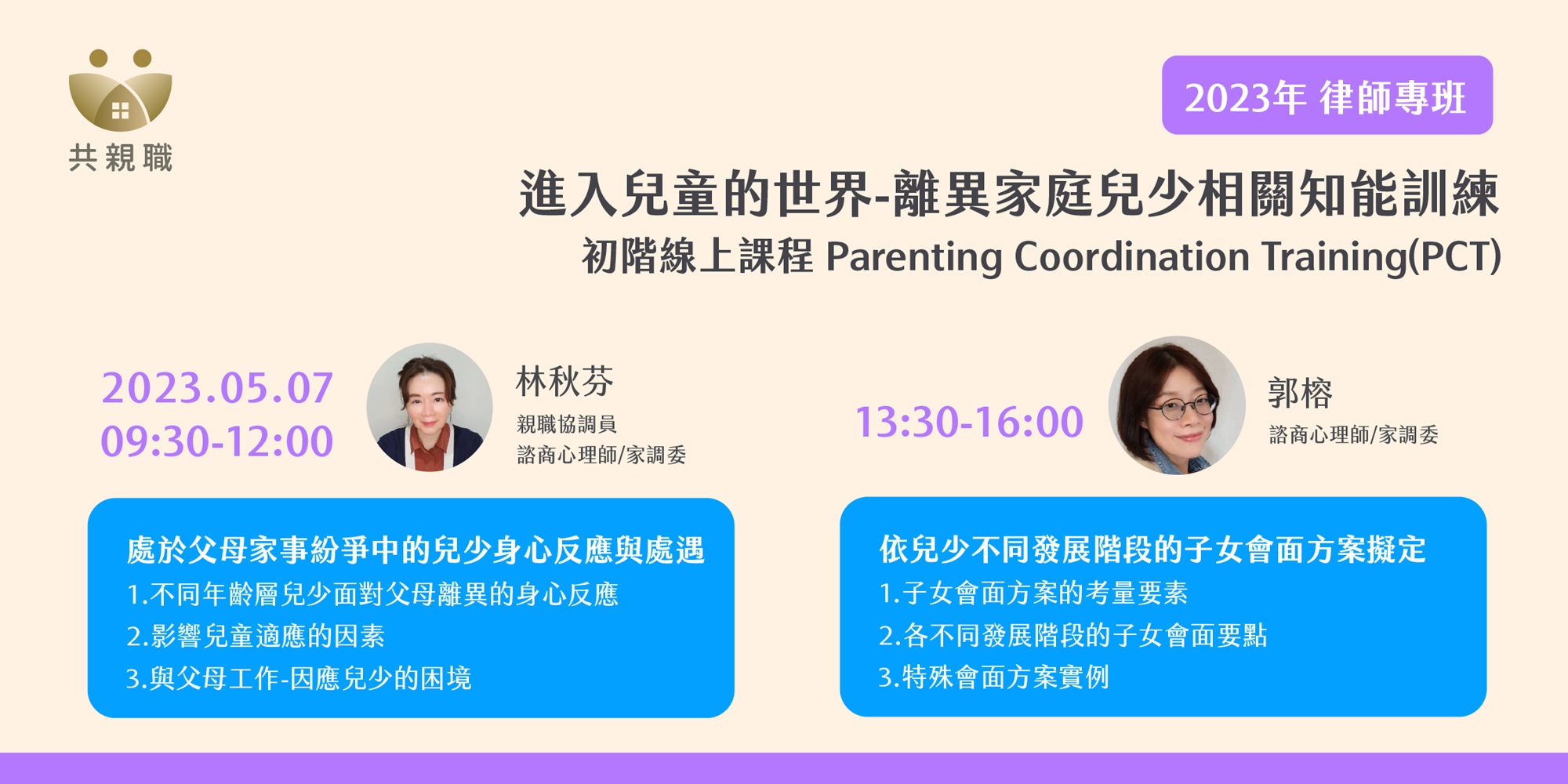 華人共親職中心/花蓮兒家繼2020開辦家事親職協調訓練-律師專班迄今,將於今年首開「離異家庭兒少相關知能訓練之律師專班」;當我們協助家事紛爭中的家庭時,時常忽略不在現場的兒少,看不見他們的苦,甚至放大他們的苦來對抗另一方父母,孩子最不忍父母於法庭上對峙。