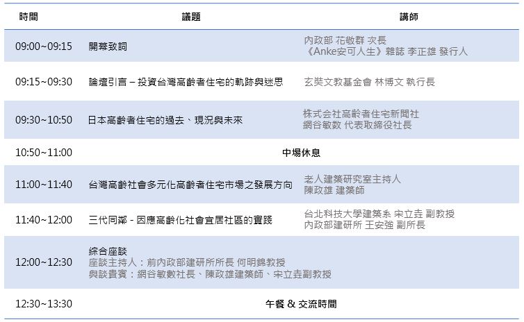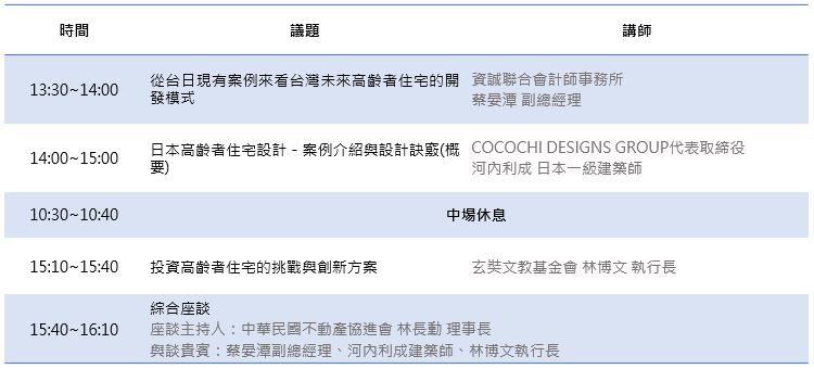 本論壇邀請日本及台灣高齡者住宅權威,一同分享高齡者居住空間的新開發模式與商機,為台灣高齡者住宅市場發展困境打開更多想像力,歡迎關心高齡社會居住空間的你我,一同來開創台灣高齡者住宅大未來。