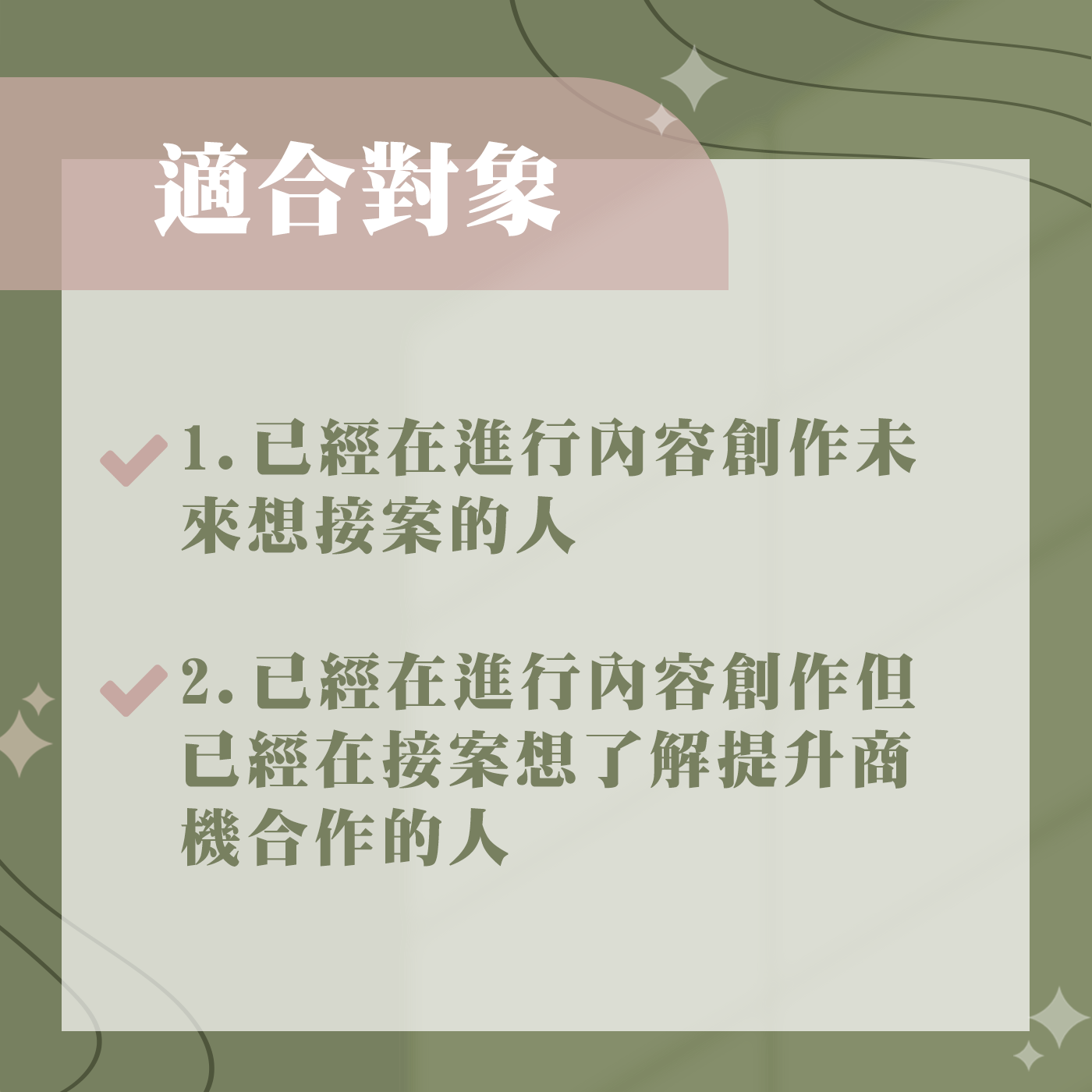 ✔已經在進行內容創作且已經在接案,想了解如何提升商機合作的人