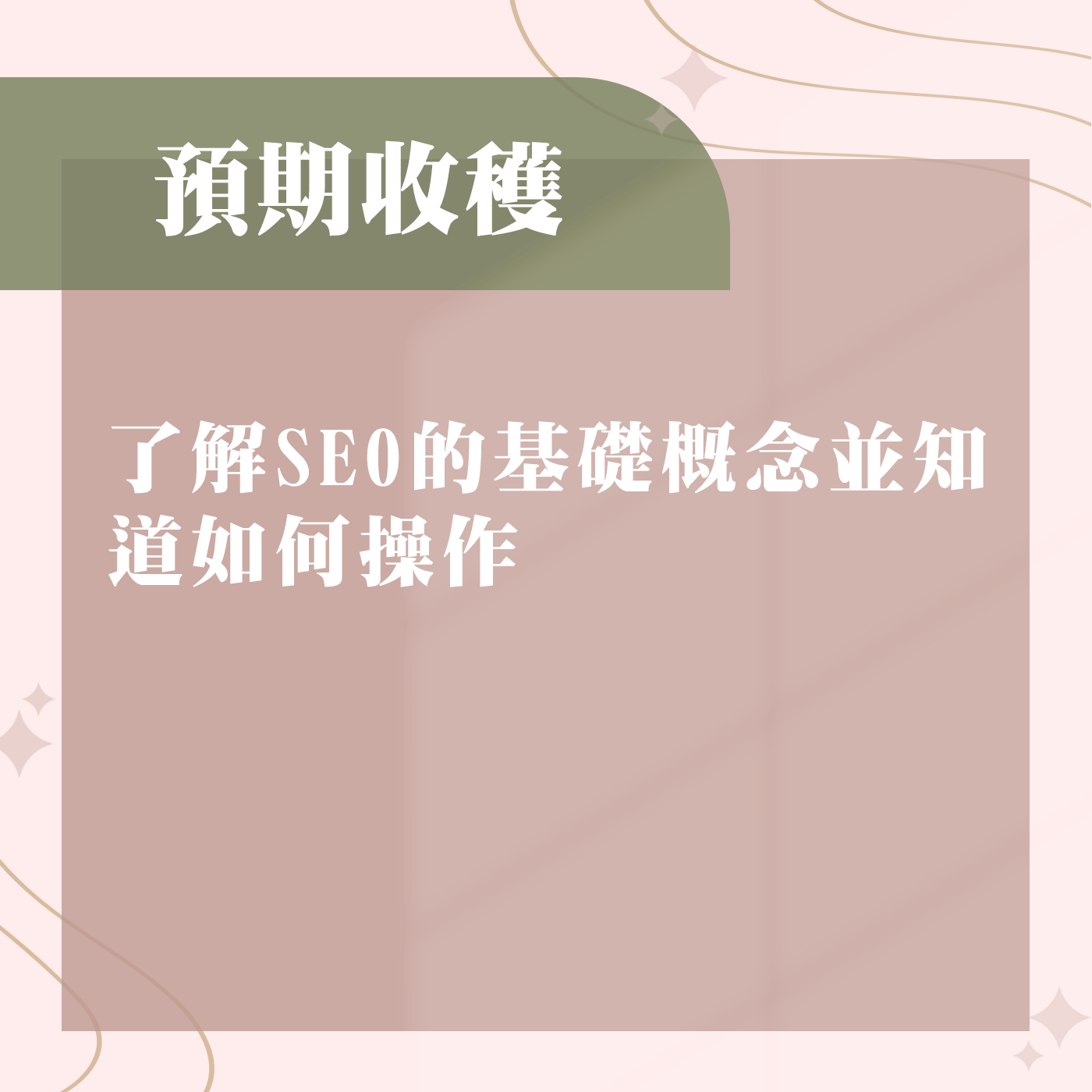 幫助課程參與者了解SEO基本概念,並知道如何提升自己內容SEO。