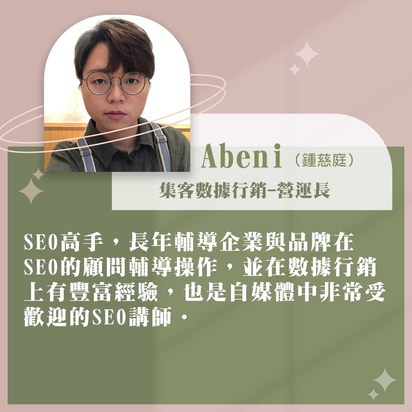 ►你的內容如何被看見?必學SEO技法/集客數據行銷-營運長 Abeni