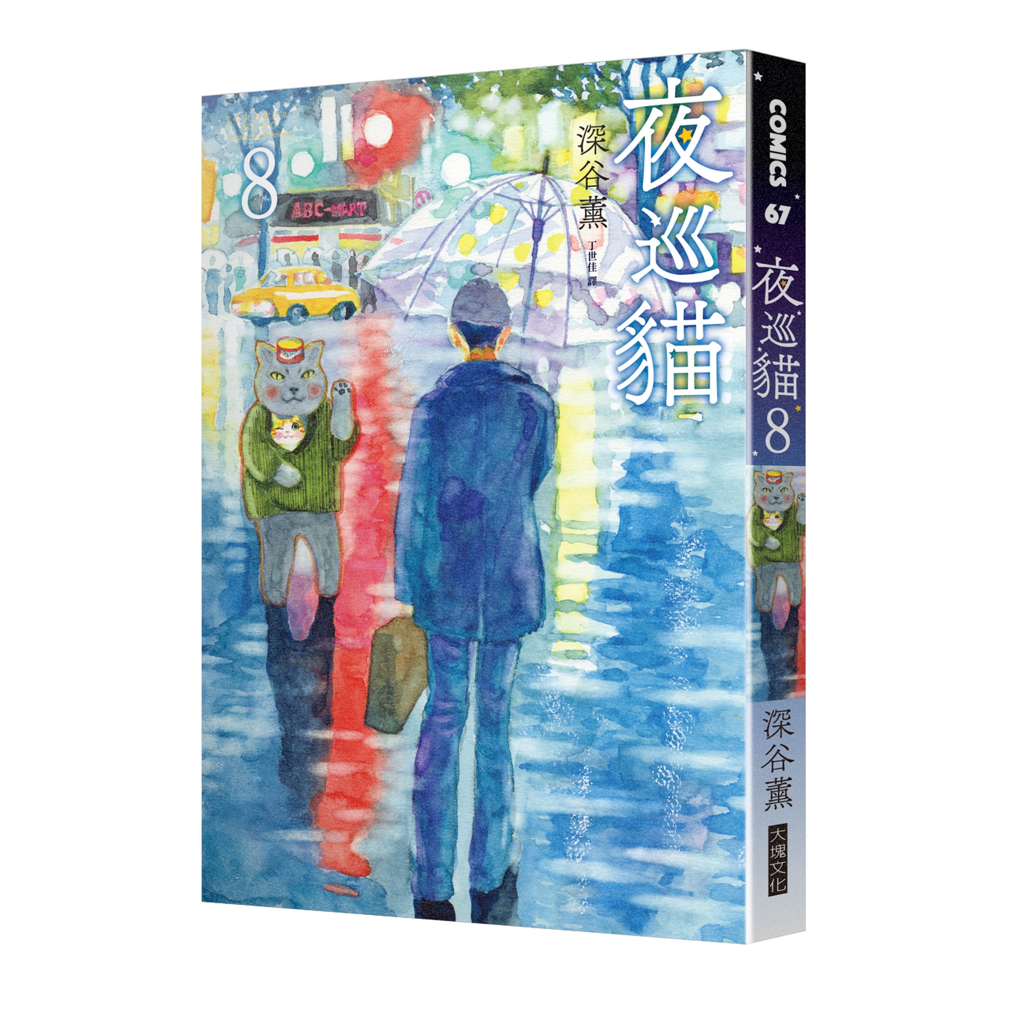 連載超過5年的時光裡,以一個個極短篇的小故事穿插而成的《夜巡貓》系列,為讀者們的心中留下了一幕幕時而美好,時而哀愁的小故事,也為讀者帶來了許多記憶深刻、個性鮮明的角色。這次的第八集可以說是滿足了大量的「帽子」粉,給予了常常讓人心疼的牠一個快樂與幸福的歸宿,也讓人相當期待牠往後的故事走向。當然這次也有大家心心念念的角色登場,狗狗兄弟跟他們的主人阿武也持續活躍中,阿武還幾度偶遇心目中的女神!相當令人期待後續發展(笑)。還有久違的賣藥已婚貓咪,泡溫泉治百病的阿痣在這一集中努力為了家人打拼!讀者們可不要錯過他的活潑表現!
