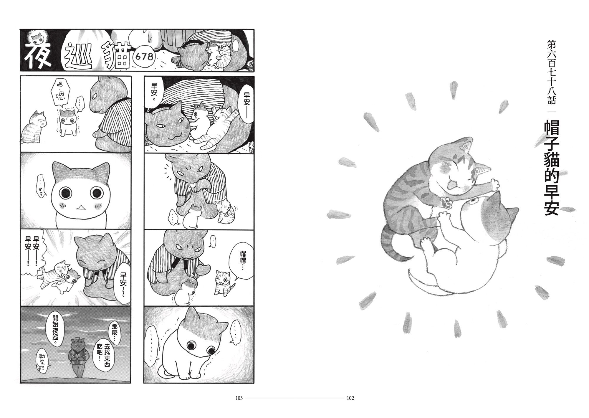 如果說前集是實習生阿了的主場,更深化與立體角色的一集。那麼本集《夜巡貓》可以說比起前一集,又再往深化角色的方向邁進一步。在讀者熟悉的,以單篇小故事為基調的節奏中,加入了兩個篇幅頗長的感人故事——〈爺爺與小貓〉跟〈燕子的故事〉。前者甚至可以說是本集最為核心的主軸,不僅延續了前面幾篇小故事,透過人氣角色——內向害羞,但又很喜歡平藏的流浪小貓「帽子」與平藏、哥,還有重郎之間的互動,讓讀者們更加了解以往一直神秘的「帽子」更多的經歷與內心面向,更是給予了他一個歸屬。最終更與卷末的加筆漫畫相互呼應,拉出了本集的核心主題:「孤獨與依靠」。