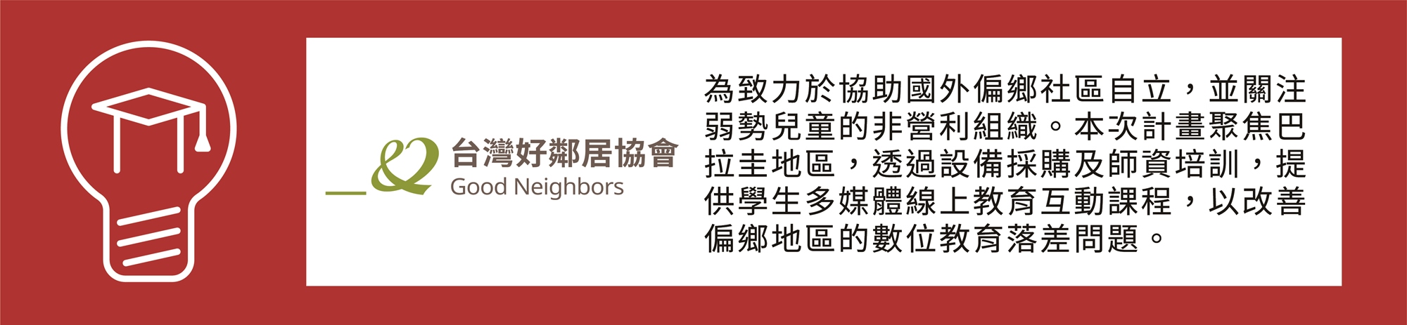 財團法人國際合作發展基金會(國合會)一直以來是臺灣與夥伴國共同追求永續發展的重要推手,自107年起以公、私、民夥伴關係策略,連結國內、外多元資源,今年更發起「2021國合會發展 x 創新 x 永續實驗競賽—影響力先行者計畫(𝗜𝗺𝗽𝗮𝗰𝘁 𝗙𝗿𝗼𝗻𝘁𝗶𝗲𝗿 𝗟𝗮𝗯)」為全臺第一個創新援外行動加速器。此次計畫也希望藉由臺灣的計畫參與團隊「以暖意為光,照亮友邦!」