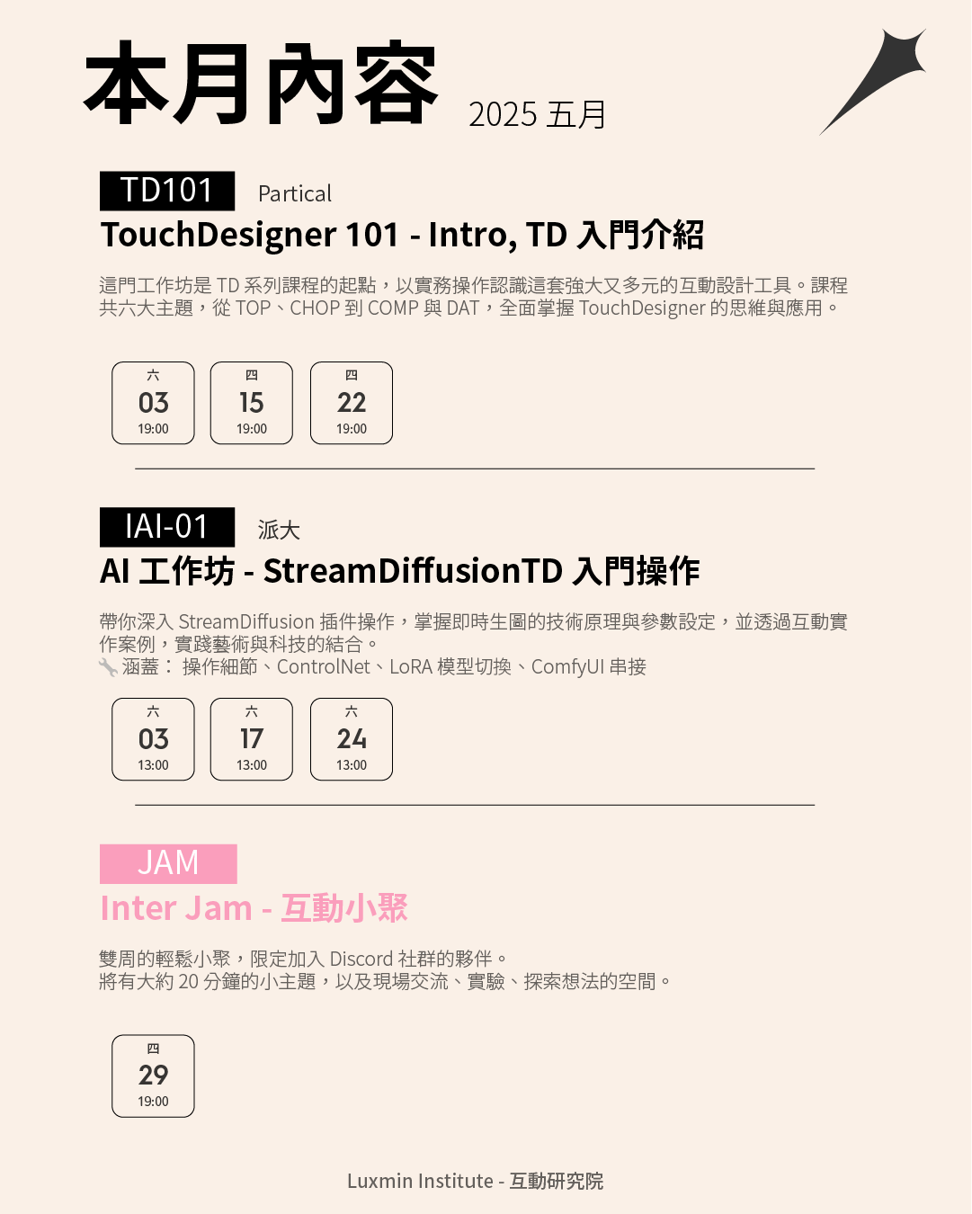 Luxmin Institute 互動研究院 - 2025 年 5 月工作坊/課程