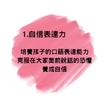 • 優等聲報到:My voice, My stage. 我的舞台我做主資深配音演員李涵菲老師將帶領孩子們透過不一樣的自我介紹忘卻上台恐懼症,建立舞台魅力形象。