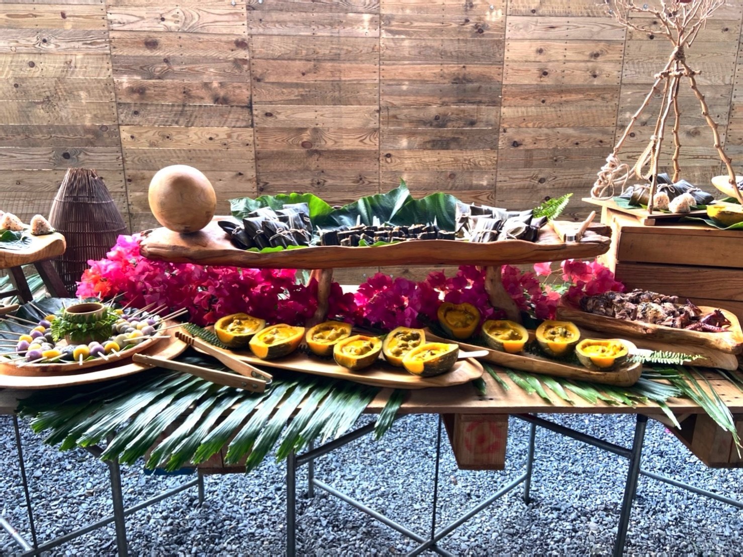 部落草地便當象徵大地之母分享的愛,以卑南族特色的意象花環來詮釋,花環是卑南族必備的頭飾,也代表榮耀,更是廣願分享及歡迎的表徵。部落草地便當是將傳統風味餐,搖身一變為可帶著走的「原式便當」,要讓部落風味,走進生活日常。不僅如此,延伸便當風味推出限定餐桌料理,蒐集部落媽媽風味、青年創意料理,還有用荖葉研發的創新口味,每一口都吃到驚喜!