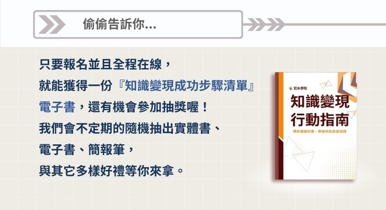 只需一個方法,將您的專業知識變成穩定收入,掌握知識變現的秘密,立刻行動!