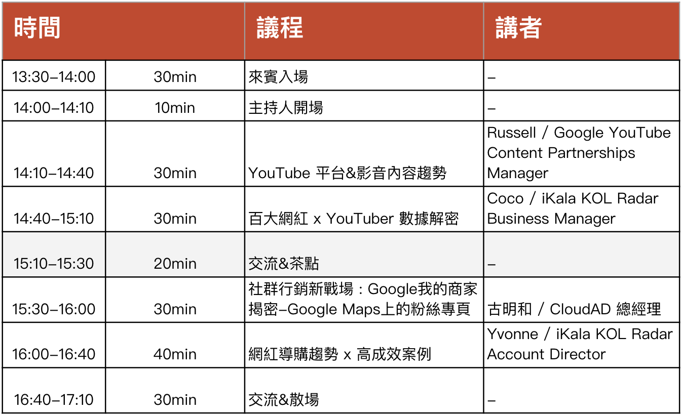 - 講座時間:2020/10/13(二)14:00~17:00(13:30 開放進場)