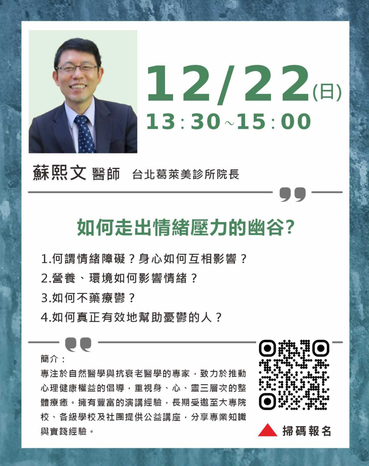 ⟢ 講座時間:12 月 21 日(六)13:30-15:00