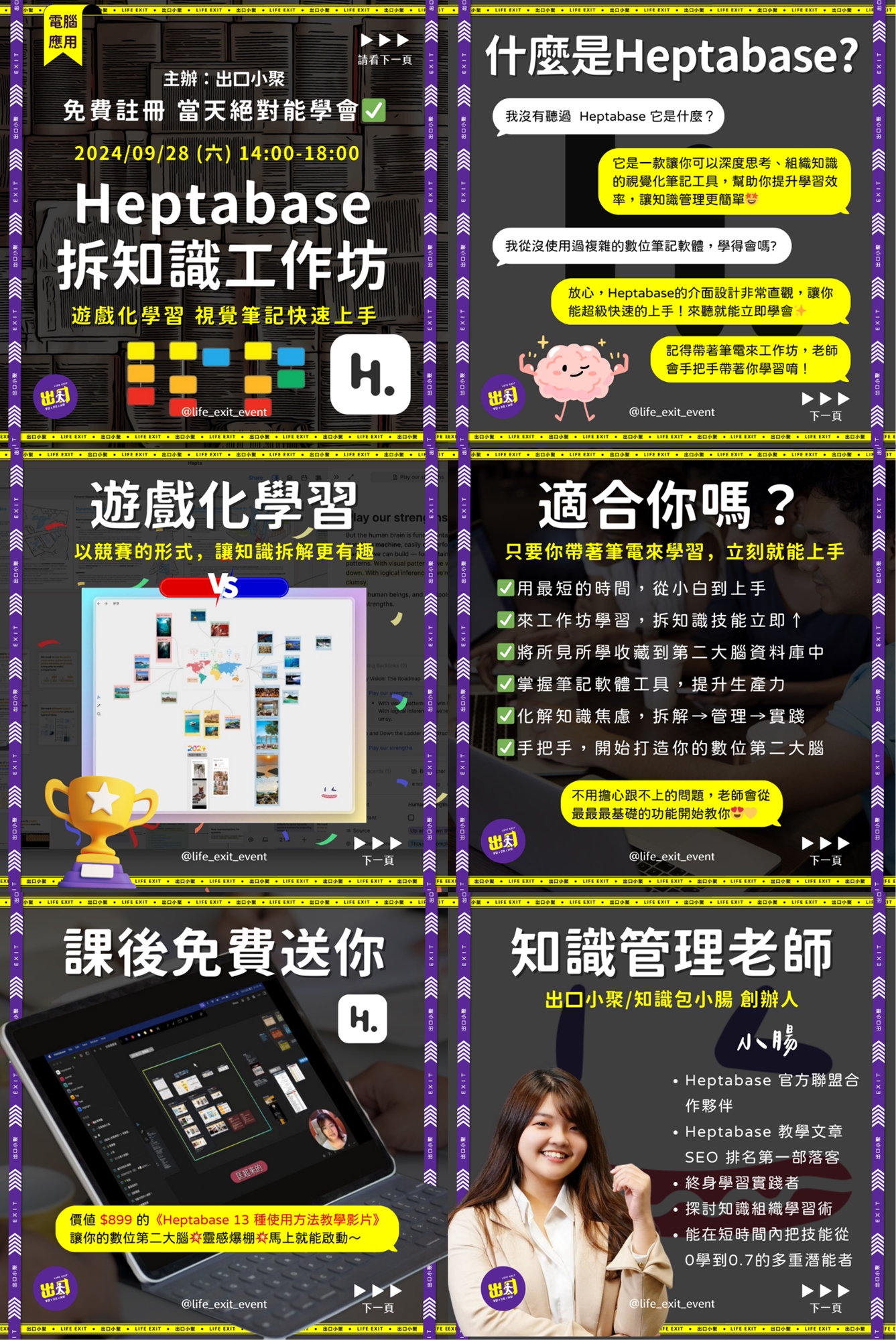 以上所有文宣都出自於「知識包小腸」之手,她是出口小聚創辦人、Heptabase 講師。