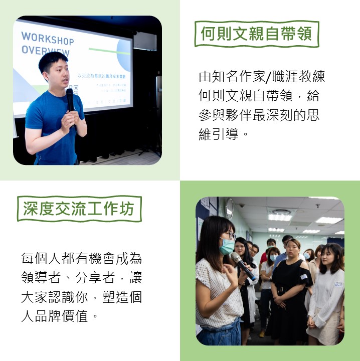 人生設計工作坊是「Career Design Lab 職涯實驗室」最核心的重點活動之一,以工作坊的討論引導方式,讓參與夥伴透過獨創的方法框架,帶領參與夥伴建構出屬於自己的人生設計方案。