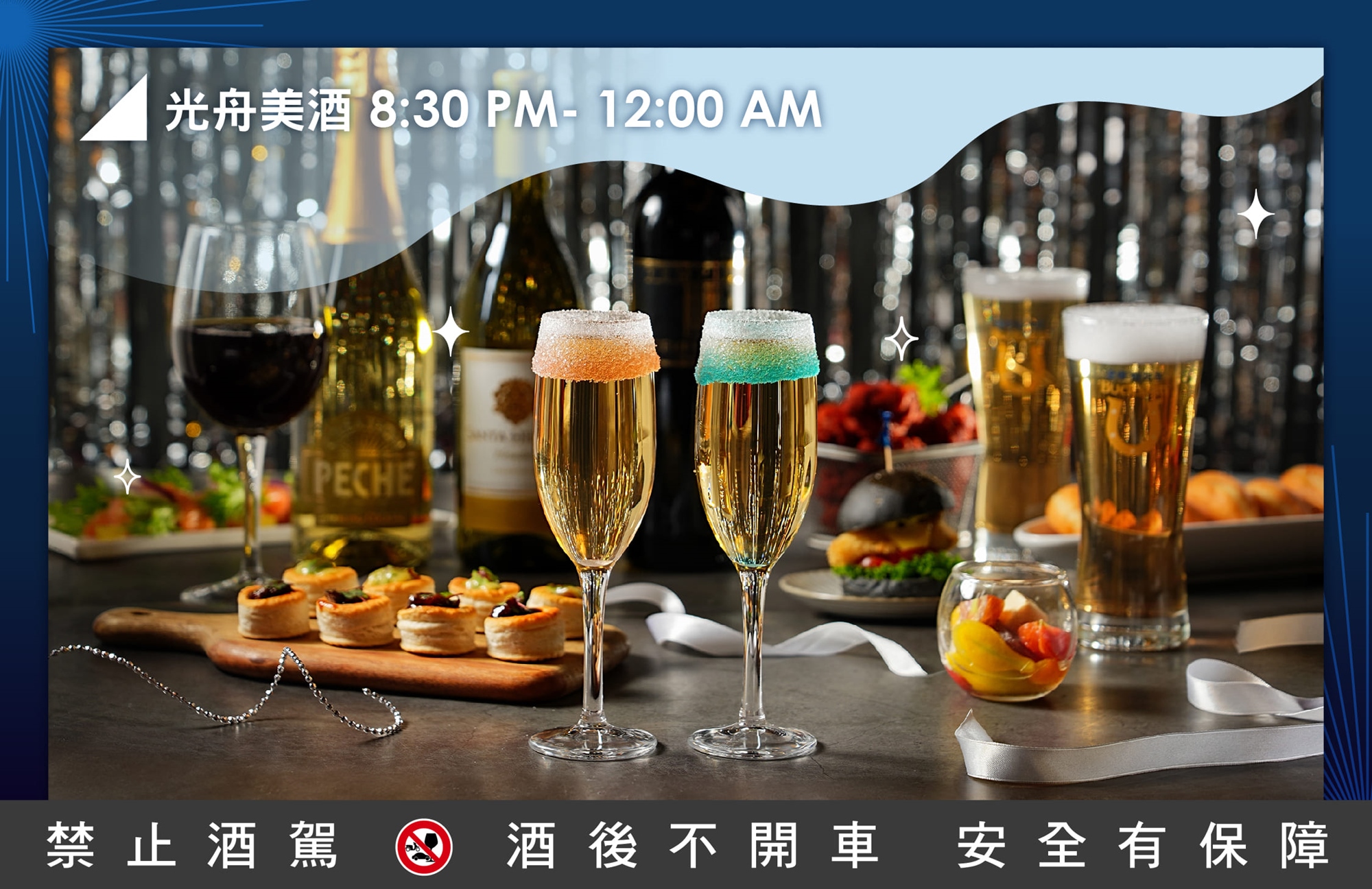 光吧位於新竹喜來登東館2F,吧檯以海上的帆船為設計理念,在昏暗氛圍感的光吧裡,宛如在海上閃閃發光的「光舟」,12/31這天,一起搭上光舟,揚帆前進2025吧!