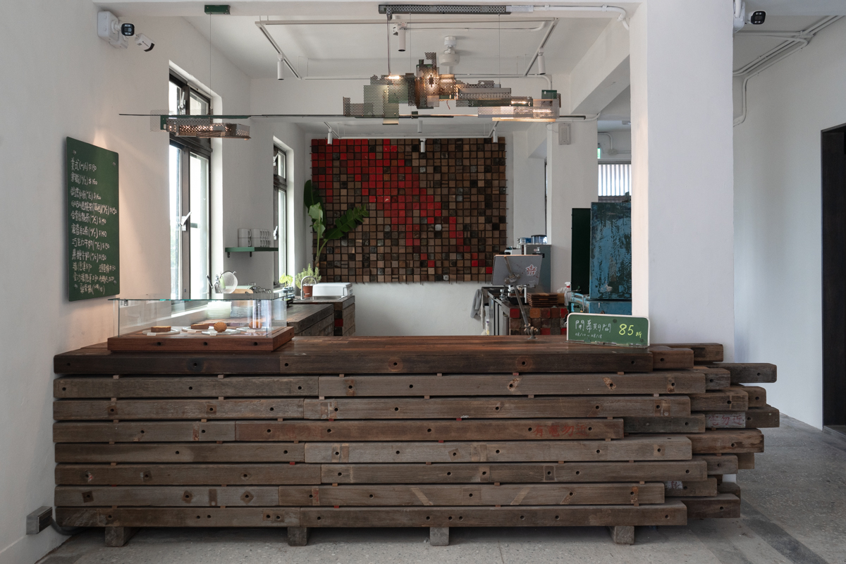 展覽的一、二樓設有一個獨特的咖啡廳,空間設計靈感來自台電的材料倉庫,以450根退役木橫擔打造而成,以倉庫堆放材料的意象,展現第一線工作現場的謹慎樣貌,二樓座位區則以退役材料創作的家具為特色,營造懷舊而又現代的氛圍。