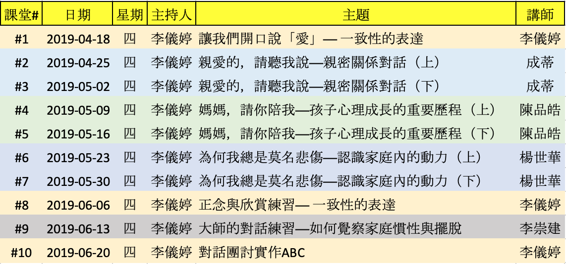 *本課程需要一次十堂全報,無法報名單一課程,亦無法中途換人上課。