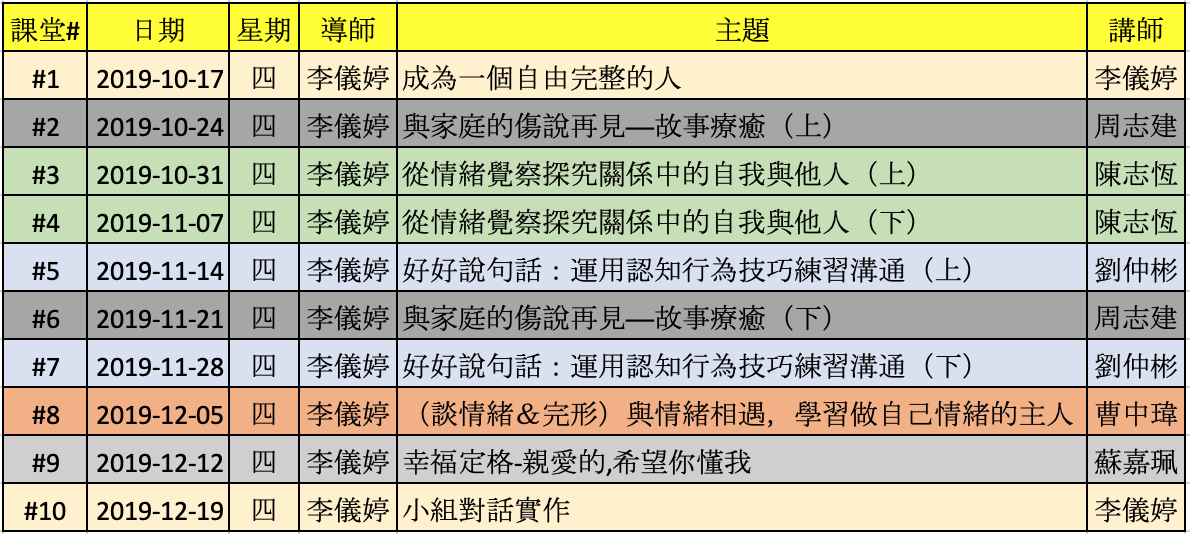 *本課程需要一次十堂全報,無法報名單一課程,亦無法中途換人上課。