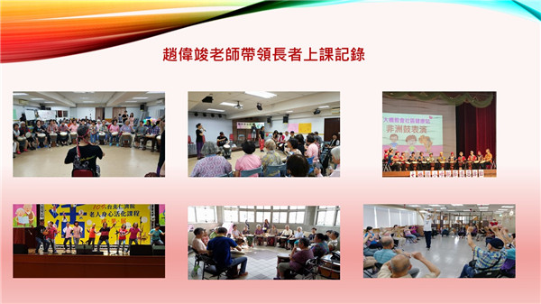 *在新北市五股老人公寓教授非洲鼓打擊已有12年