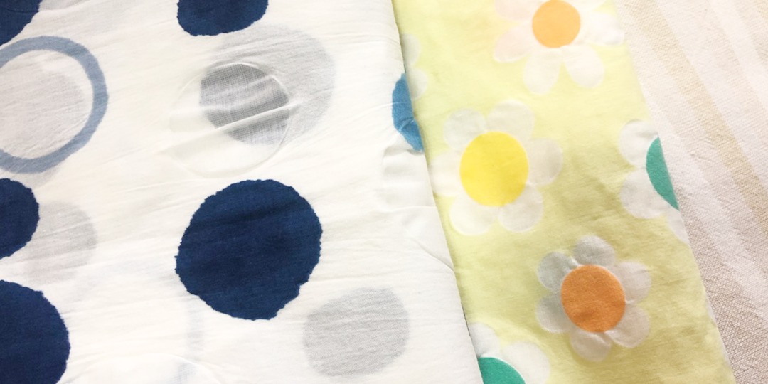 由左至右日本純棉-藍白泡泡/粉黃小花/米色橫條紋