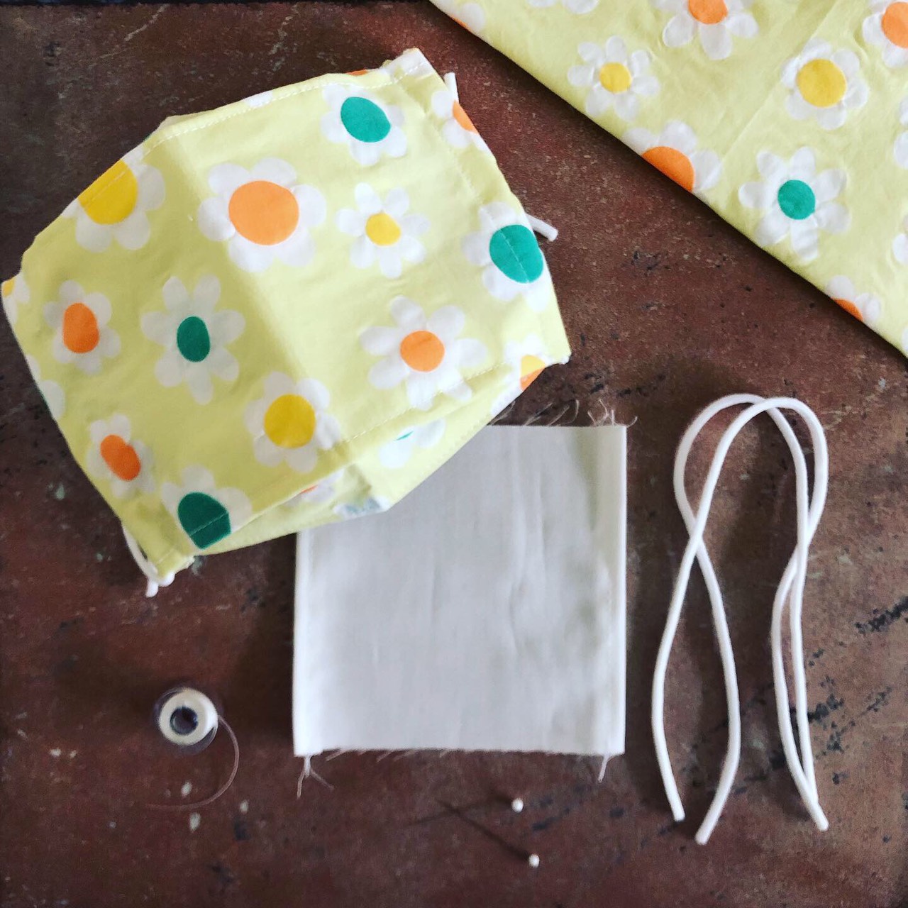 課程材料包含:日本花色棉布、醫用口罩棉繩、濾材一片、針線