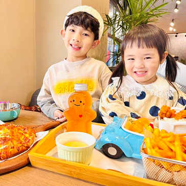 親子一起同樂做pizza! 將披薩餅皮化作畫布、食材配料當作彩筆,用孩子無限的想像力拼湊喜歡的圖案,完成後搭配獨家配料由主廚烘烤,出爐時香味四溢,孩子也會因為是自己親手做的關係,覺得特別美味呢!