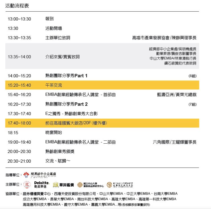 本次活動為南台灣首創匯聚串聯南部各校EMBA、優秀企業、創投及社團團體,共同推動辦理,