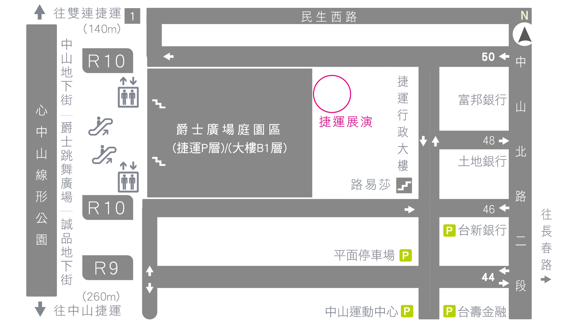場地地址:台北市中山區中山北路二段 48 巷 7 號(捷運行政大樓 B1 層 / 爵士廣場 P 層)