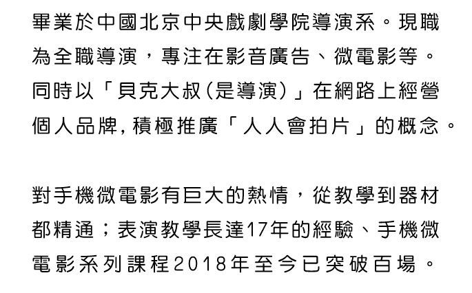 更包含現場教學實戰,讓你拍出有質感的行銷短片!