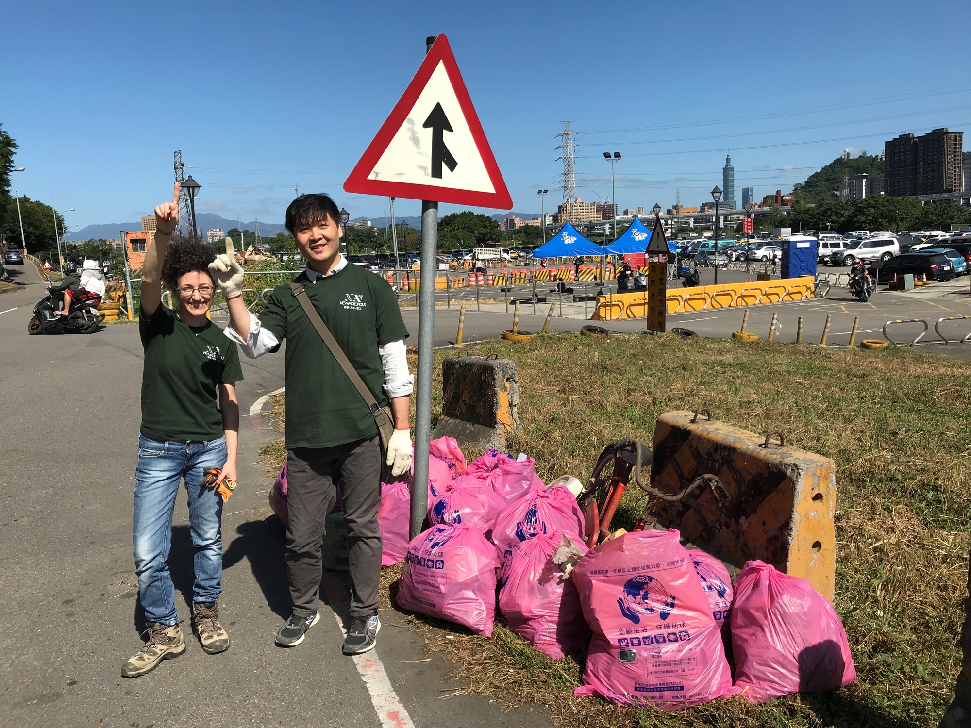 在新北市溪洲河濱公園附近,有一處鄰近停車場的區域,時常有人來去走動,時間久了累積不少垃圾,我們想要把它清理乾淨。