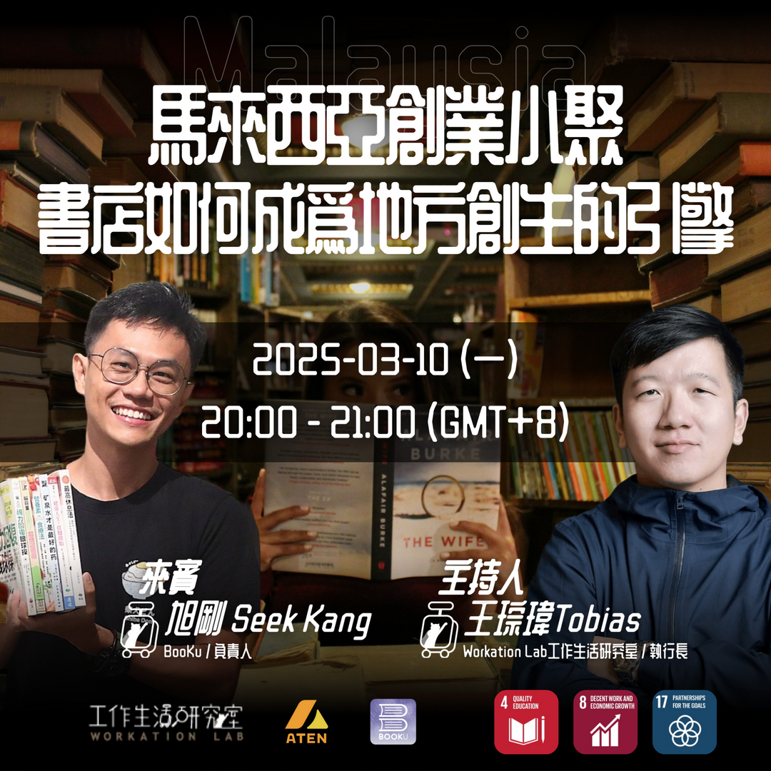 在這場線上小聚中,邀請馬來西亞創業家將帶你深入探討,書店如何成為地方創生的引擎,如何透過閱讀,串連起人與人、社區與社區,共同創造更美好的未來。